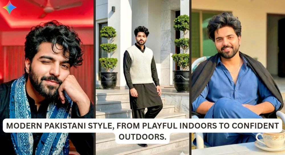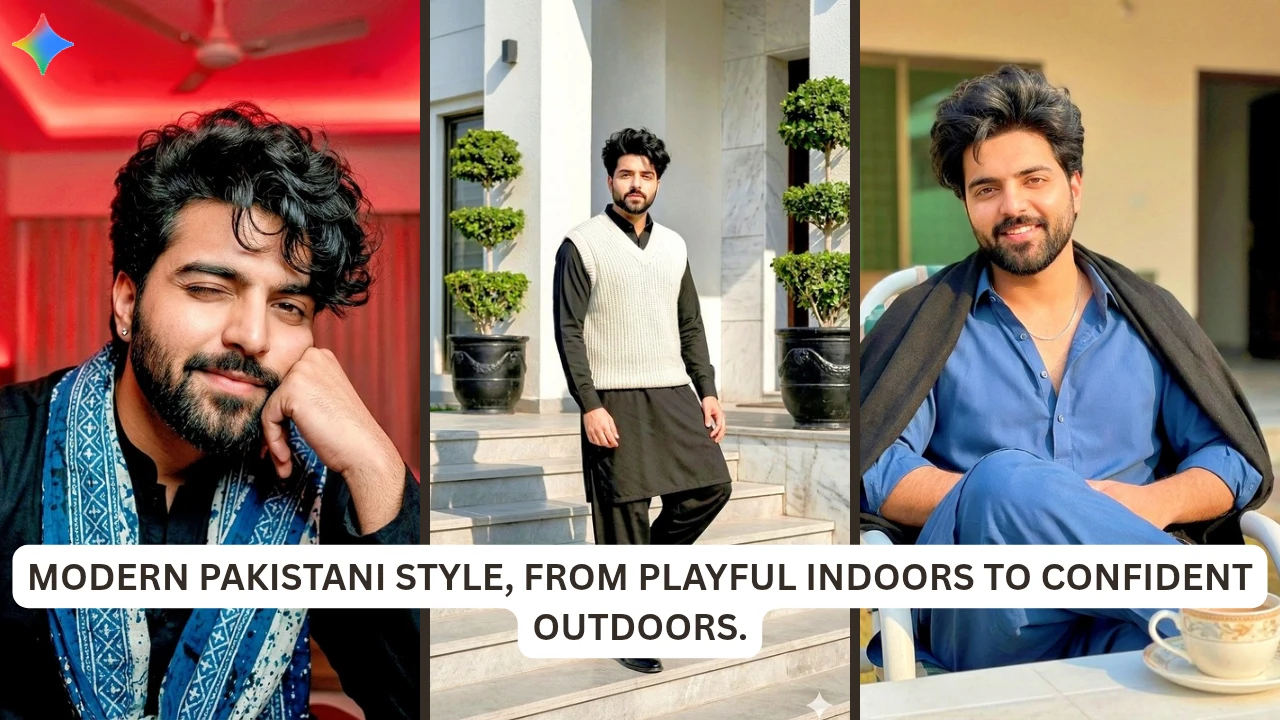 I tried three different prompts with the same young Pakistani man. Each one has its own mood. First, a cozy indoor scene, playful and warm. Then, a calm outdoor lifestyle moment. Finally, a high-fashion architectural shot.