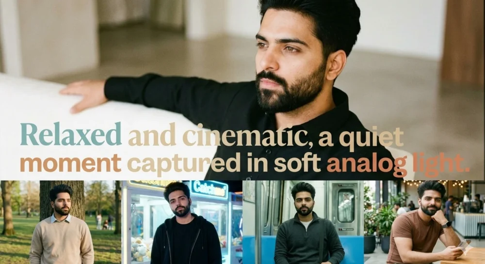 In the age of AI-generated visuals, creating lifelike imagery that feels both authentic and cinematic has become a fascinating frontier. Using Google Gemini and ultra-realistic analog film prompts, we’ve explored everyday scenes of a young South Asian male, capturing everything from quiet introspection to casual urban life. Each image is rooted in real film aesthetics, with a strong focus on natural skin tones, authentic textures, and subtle micro-movements that breathe life into the portrait.