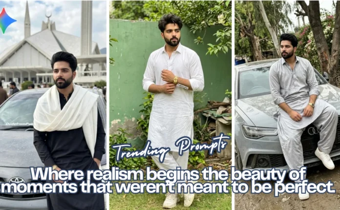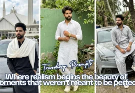 From a sun-drenched garden charpoy arrangement to a luminous LED portal, and ultimately a rooftop terrace during the golden hour, these portraits exemplify cultural sophistication infused with modern hero-film visuals. Each frame emphasizes luxurious Shalwar Kameez styling, two-button-open layering, elegant accessories, and a blend of natural and Hollywood-inspired lighting.