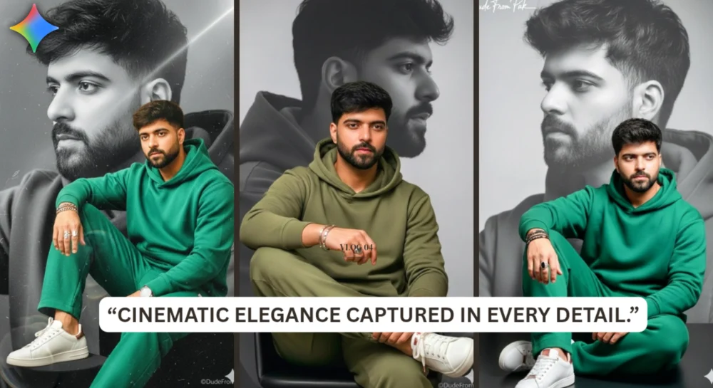 Enter a realm where fashion, art, and cinematic storytelling intersect. This collection features hyper-realistic 8K portraits of a young man captured in his true essence, highlighting every facial detail, hair strand, and expression without modification. Dressed in a contemporary green hoodie, coordinating baggy trousers, and immaculate sneakers adorned with rose gold accents, he radiates effortless elegance and quiet confidence.