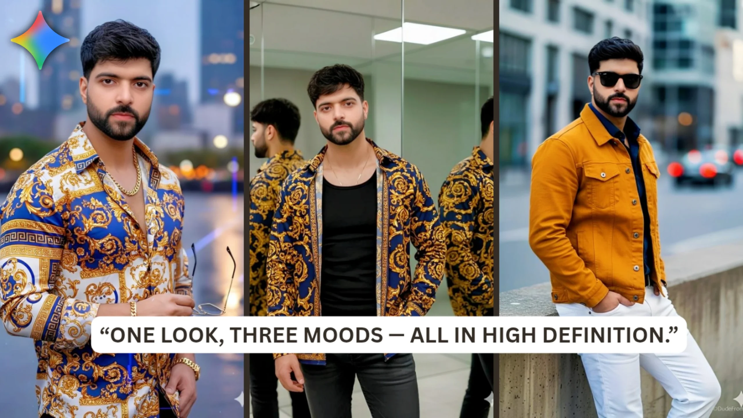 Each scene exudes its unique energy, ranging from the introspective elegance of indoor settings to the vibrant golden-hour atmosphere of the city and the bold flair of street style.