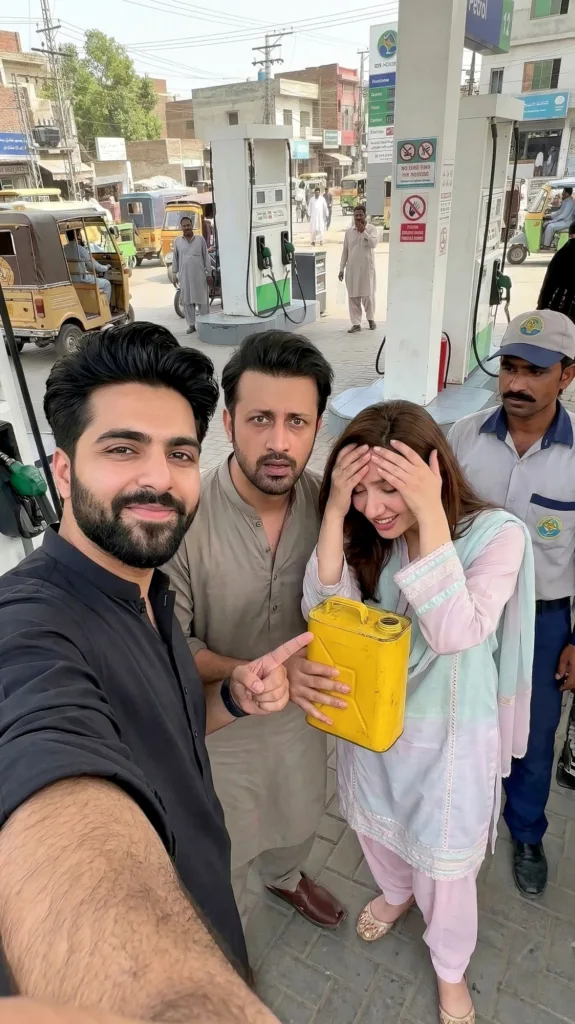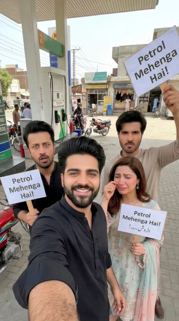 What surprised me was how quickly a simple image could capture something familiar. A selfie at a petrol pump instantly tells a story most drivers in Pakistan understand without needing much explanation.
