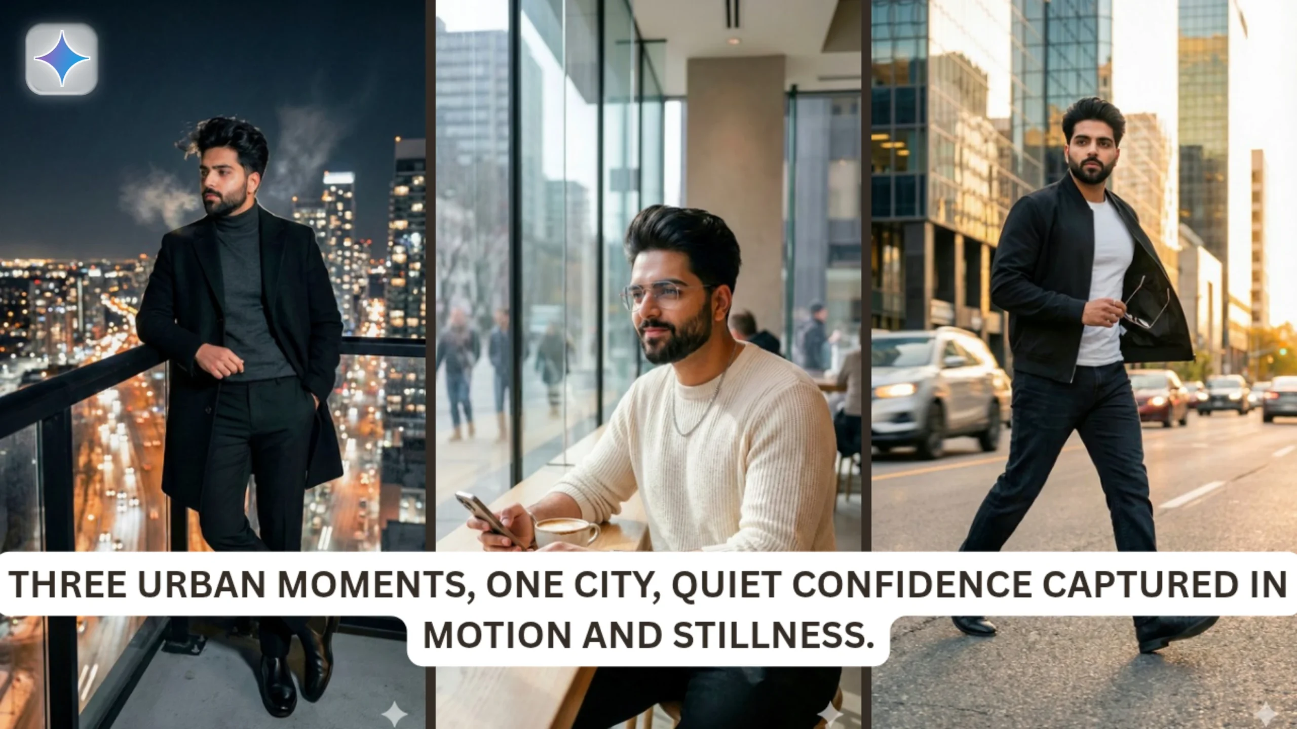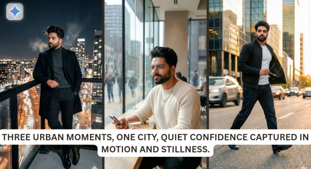 He looks away from the camera, jawline catching soft rim light, expression calm and self-assured — the confidence of someone who doesn’t need attention.
