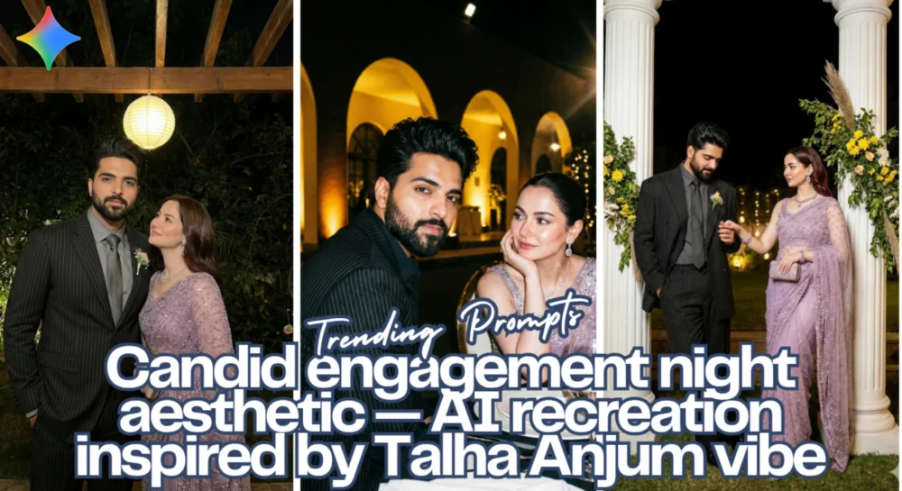Some event photos feel different. Not because they are heavily edited — but because they feel unplanned. Slightly harsh lighting, imperfect shadows, natural posture, real fabric texture, and expressions that aren’t exaggerated for the camera. That candid night-event look has been trending lately, especially after engagement-style visuals linked with Pakistani rapper Talha Anjum started circulating and influencing creative edits and AI recreations.